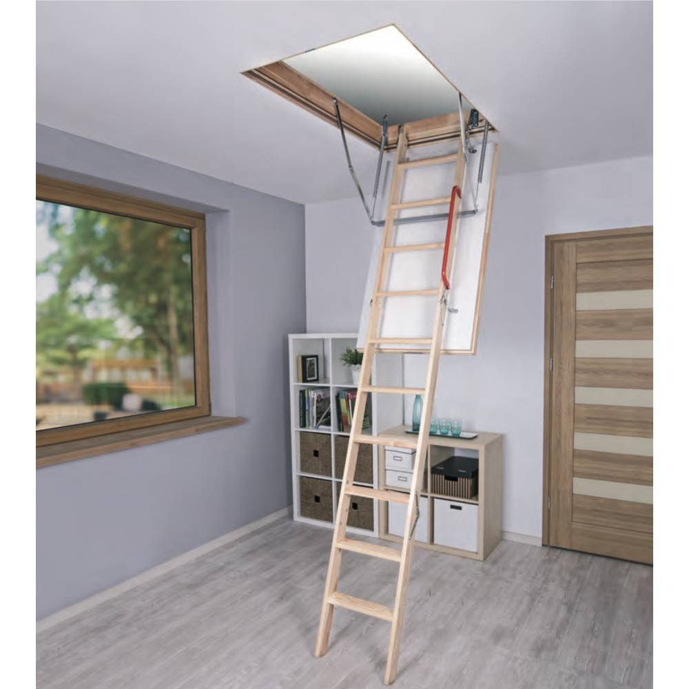 Kapaku – I bardhë në të dy anët, 3.6cm, me termoizolim. – I pajisur me bravë. Kutia – E bërë nga druri i pishës – E përforcuar në kënde me kapëse suste; – E pajisur me shirit gome. Shkalla – Shkallë me 3 seksione; – E bërë nga druri i pishës . – E pajisur me shkelëse OXS-B Shkelësja e shkallës – Platformat e shkallëve janë të lidhura me anët mbajtëse përmes nyjeve “dovetail” për të rritur qëndrueshmërinë e lidhjes; – Të profilizuara kundër rrëshqitjes.
